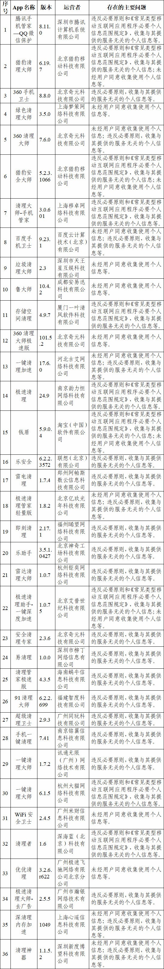 中新网5月10日电 据网信办微信公众号消息,近期,针对人民群众反映强烈的App非法获取、超范围收集、过度索权等侵害个人信息的现象,国家互联网信息办公室依法对安全管理、网络借贷等常见类型公众大量使用的部分App的个人信息收集使用情况进行了检测。