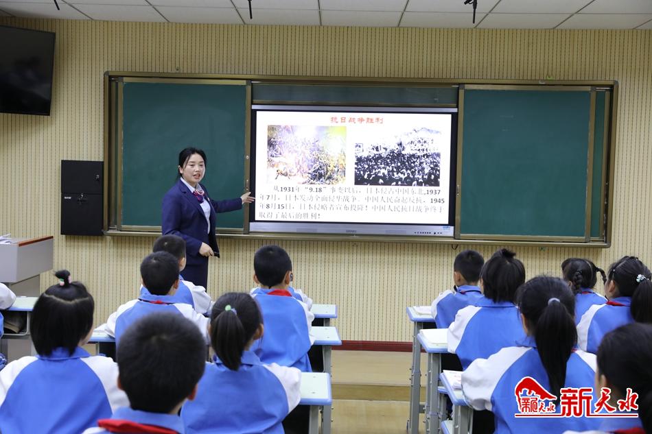 走进学校录播教室,三年级(7)班的思想品德教育课上,教师徐利芳正在讲抗日战争和解放战争的事,学生们听得特认真。