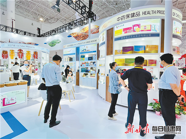 “甘肃是中药材大省,有党参、黄芪等多个地道中药材……”在中药保健品展区,甘肃佛慈健康生物科技股份有限公司工作人员正在为参展观众讲解甘肃丰富的中药材。