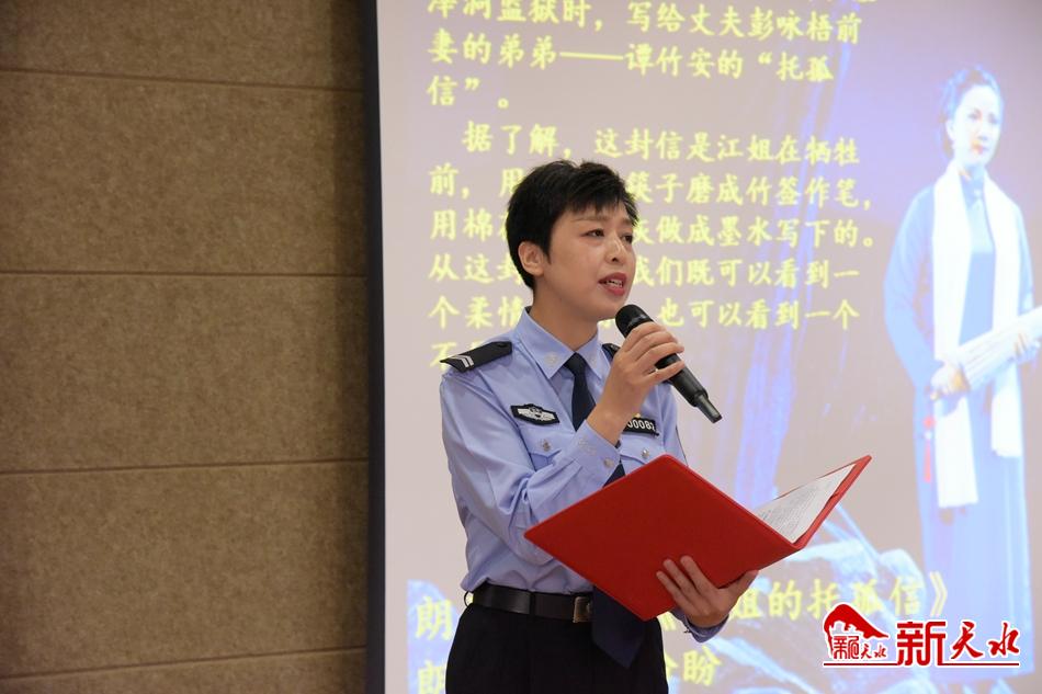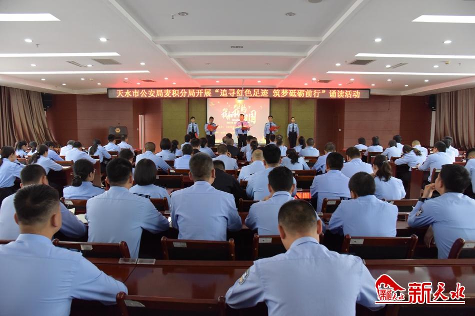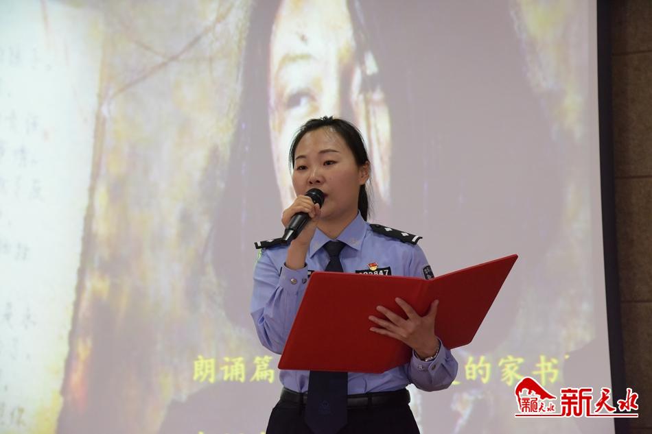 5月10日上午,麦积公安分局举办党史学习教育“追寻红色足迹,筑梦砥砺前行”诵读活动。活动中,表演队伍以单人诵读、两人诵读和集体诵读等方式,依次朗诵了江竹筠的信、《赵一曼家书》《我和我的祖国》《信念永恒》等红色经典作品,满怀热情地抒发了敬党爱国情感。(新天水记者 王晓华摄)