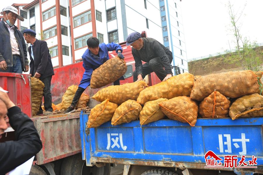 当日,由秦州区农业农村局统一配送的5800公斤玉米种子、17400公斤马铃薯种子、5007600株辣椒苗、10吨化肥、3吨有机肥、41300公斤地膜运送至天水镇新村,然后由镇政府统一配送给全镇21个行政村的1448户受灾群众。
