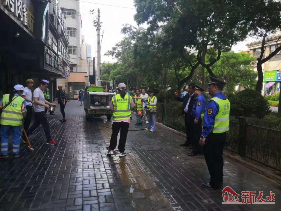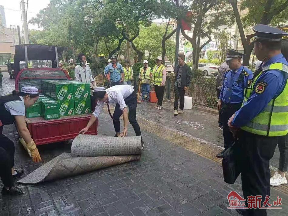 新天水讯【通讯员 靳雪萍】近日,秦州区执法局玉泉中队联合石马坪街道、石马坪派出所、市场监督管理局、环卫等多个部门,对秦州区大众南路烧烤店铺店外经营占道桌椅、人行道上摆放的垃圾桶等进行集中整治。