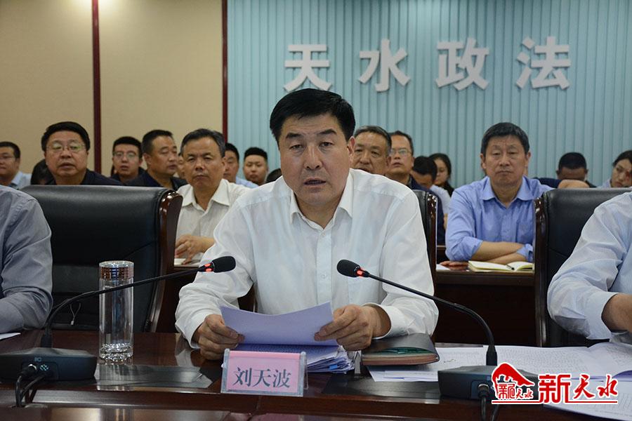 新天水讯【记者童强】5月12日,天水市委常委、政法委书记、市政法队伍教育整顿领导小组副组长、办公室主任刘天波主持召开全市政法队伍教育整顿党委政法委系统查纠整改环节工作推进会。