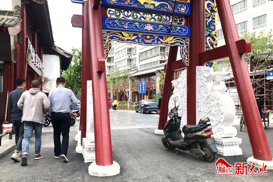 5月14日,一辆摩托车停放在秦州区自由路口的牌坊下,对过往行人造成不便,望广大市民在停放车辆时不要影响到他人的正常通行。(新天水记者孙燕芸 摄)