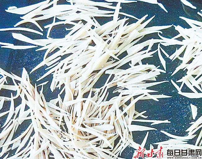 光是面,就很费功夫。不像普通的面,擀好就行了,碎面的面,既要擀成又薄又匀的面,还得稍微晾一会,再切成长约1厘米的小面片。其间的诀窍是,面擀开晾到柔干时再切,切成菱形,要切得又细又匀。然后,将这些形如雀舌的小面片,码在碟盘里待用。