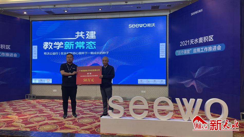 推进会上,希沃作为教育信息化应用工具提供商和活动承办方,还为麦积区教育系统捐赠了价值50万元的常态化录播设备及培训运维服务。