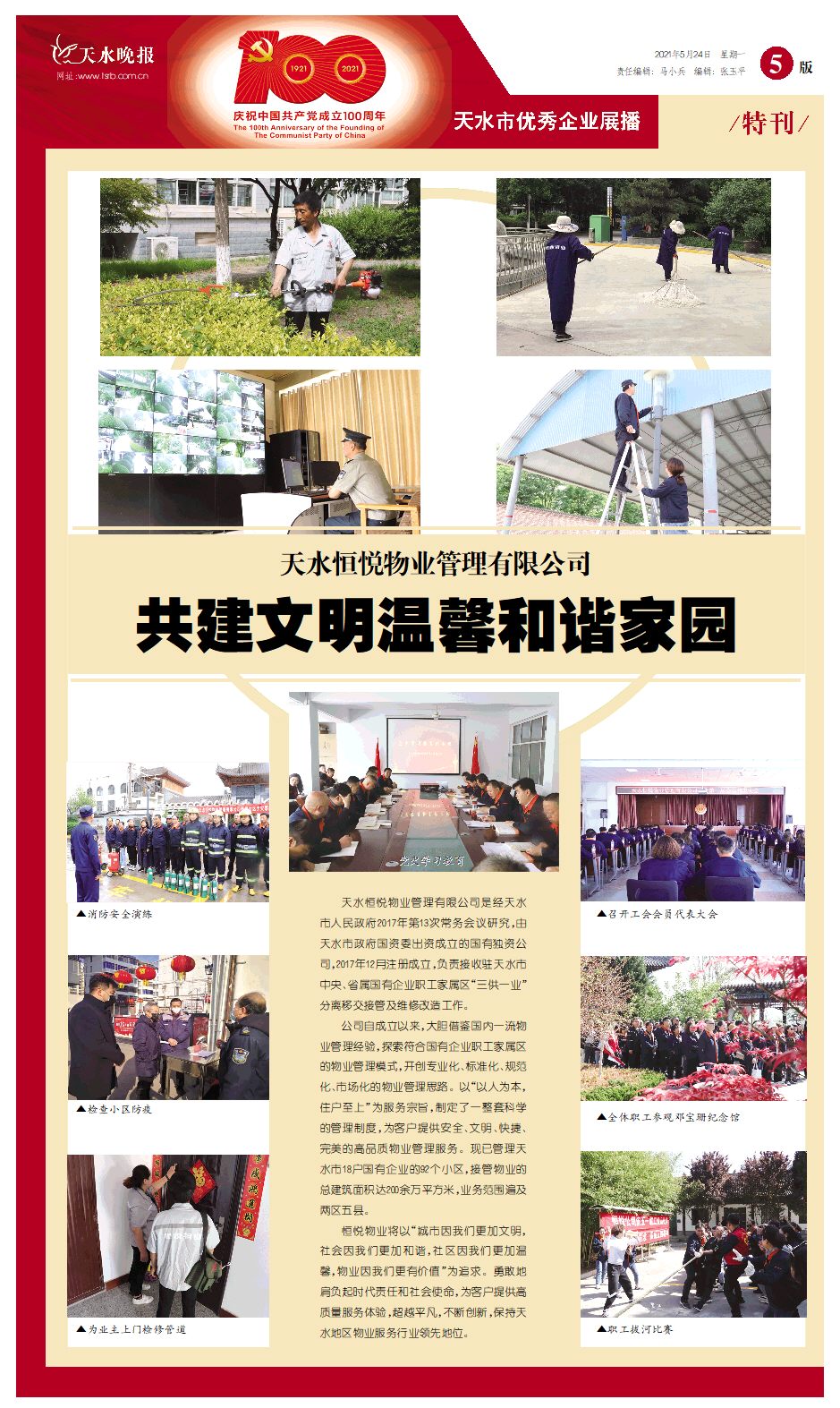 特刊|《庆祝中国共产党成立100周年,天水优秀企业展播》——天水恒悦物业管理有限公司