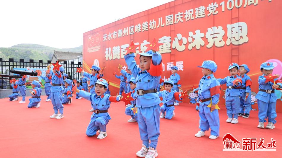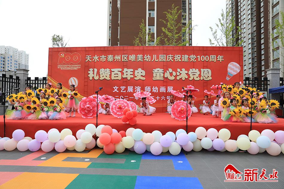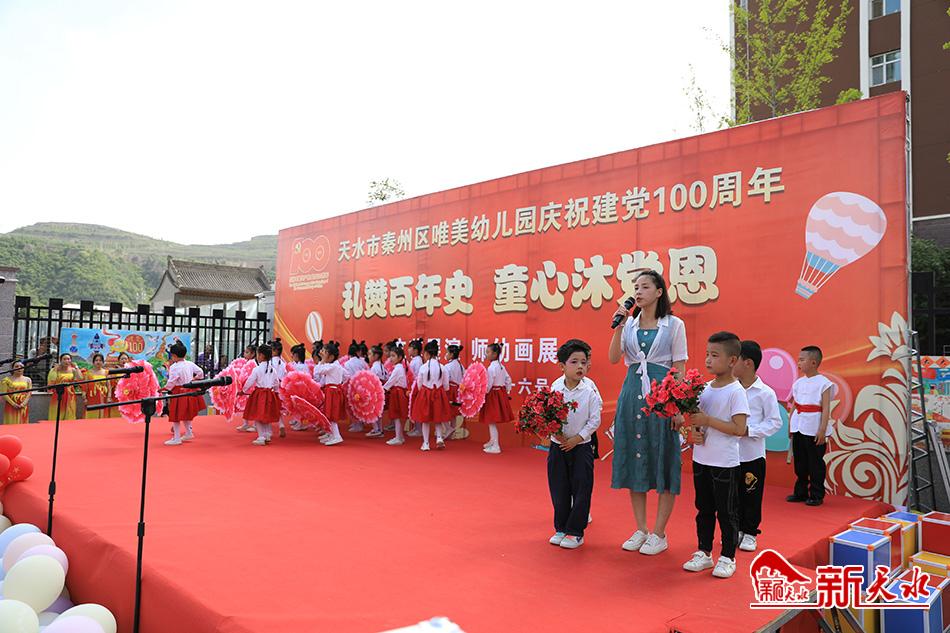 5月26日,为庆祝中国共产党建党100周年,秦州区唯美幼儿园开展了以“礼赞百年史 童心沐党恩”为主题的文艺展演和师生画展活动。