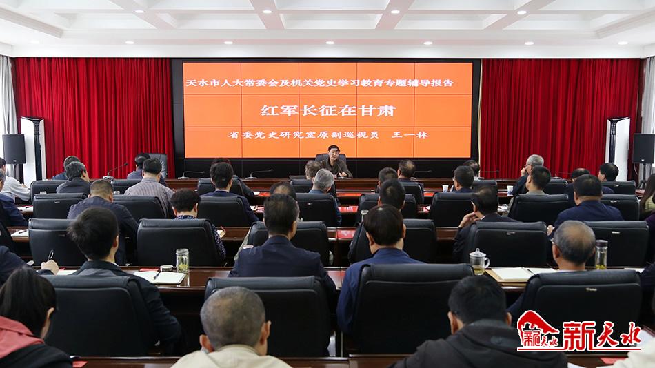 新天水讯【记者马放】为深入推进党史学习教育,5月28日,市人大常委会机关举办党史学习教育专题辅导报告会,邀请省委党史研究室原副巡视员王一林作了题为《红军长征在甘肃》的专题辅导报告。