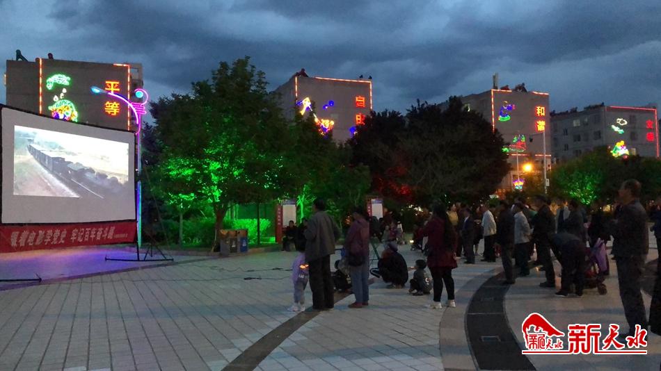 广场支起党史学习教育“新荧幕”。 一块幕布、一个投影仪就是一支红色精神宣讲队。连日来,清水县的城区广场、小区、农村广场人头攒动,一场场红色电影轮番上演,把令人振奋的爱党爱国主旋律送到了群众身边,用一个个生动的红色故事,引导广大居民切身感受我们党的艰辛历程、巨大变化、辉煌成就,将红色文化融入进了他们喜闻乐见的文化活动中,进一步激发广大居民知史爱党,知史爱国。