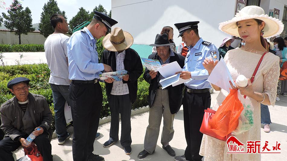 新天水讯【记者 张彬霞】5月31日,秦安县公安局千户派出所民辅警为辖区中心小学庆祝“六一”文艺汇演顺利进行保驾护航。在安保的同时,民警还积极开展了防范电信诈骗的宣传工作。