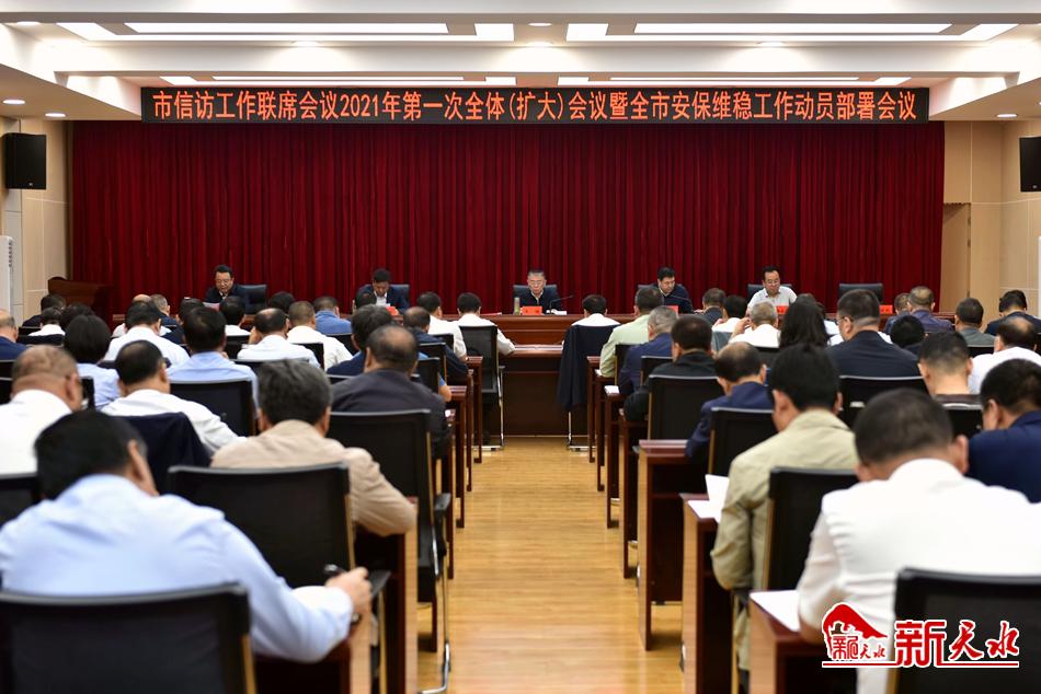 新天水讯【记者 杨璟】6月1日上午,天水市信访工作联席会议2021年第一次全体(扩大)会议暨全市安保维稳工作动员部署会议召开,天水市委书记王锐出席会议并讲话。他强调,全市各级各部门要以坚定的决心意志、强烈的政治担当、过硬的工作措施,认真履职尽责,全力攻坚克难,努力开创全市安保维稳和信访工作新局面,以优异成绩庆祝建党100周年。