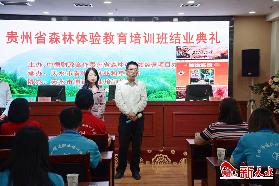 新天水讯【记者 黄虹】6月1日,由中德财政合作贵州省森林可持续经营项目办主办、天水市秦州区林业和草原局承办的贵州省森林体验教育培训班结业典礼在天水博通职业培训学校举行。