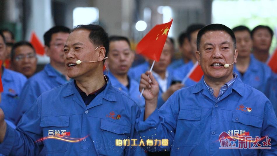快闪现场,省市劳模王东明、刘民祥、安琪、吕毓军、陈宝平等倾情领唱,车间、班组一线工人热情高涨,纷纷加入合唱,大家用歌声、掌声、笑脸,尽情表达着对中国共产党建党百年的喜悦与祝福。歌声传递了热情,绽放了力量,象征着希望。
