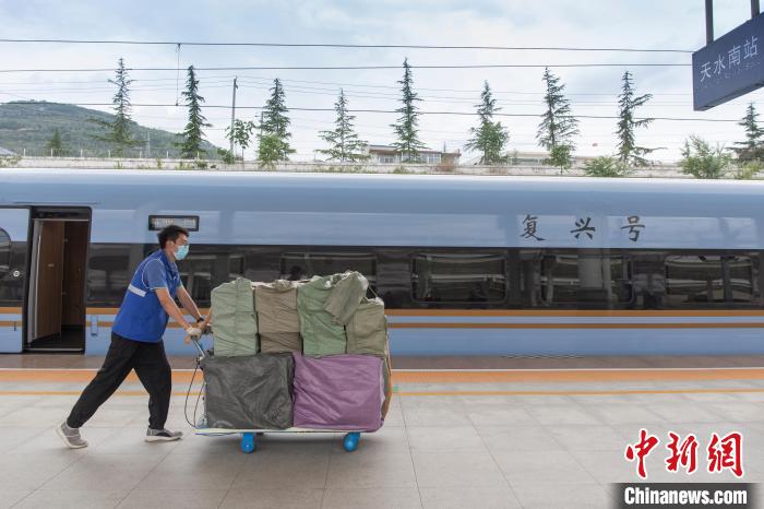 2日当天,从天水烟铺村采摘的新鲜樱桃从天水南站专用通道安检进站,“搭乘”动车组预留车厢或通过载客动车组列车快递柜,仅1小时24分钟就到达兰州西站,第一时间由中铁快运兰州分公司安排专人专车转运中川机场,然后装上航班飞往全国各地。