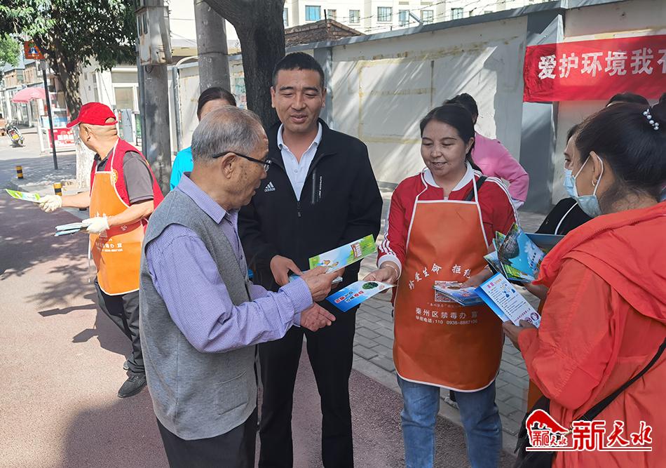活动中,各社区采用标语宣传、环保知识讲座、环保知识宣传手册发放以及环境卫生集中整治等多种方式,对大气污染防治法、环境保护相关知识进行了宣传,旨在营造人人关心环保、支持环保、参与环保的浓厚氛围。(新天水通讯员 李娟 摄)