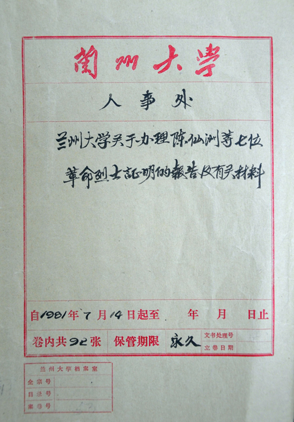 5月25日,当记者走进兰州大学档案馆,打开这份共有92页的《兰州大学关于办理陈仙洲等七位革命烈士证明的报告及相关材料》时,那段可歌可泣的历史再次展现在我们面前。