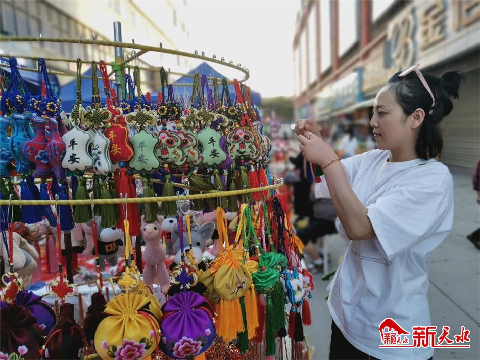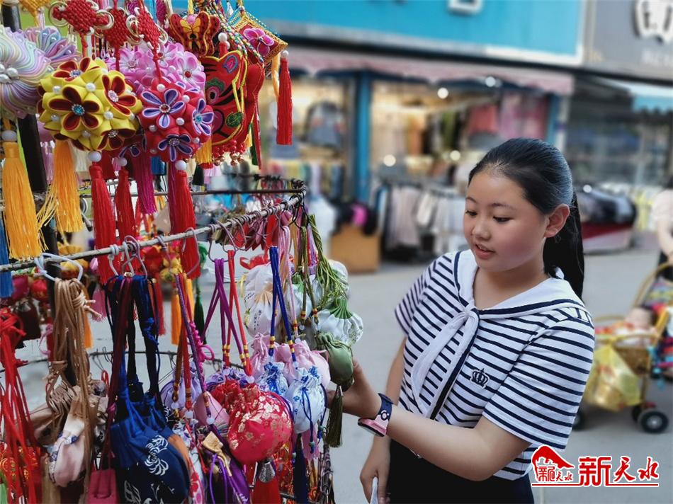 端午将至,荷包飘香。6月5日,在秦州区龙城广场西面,色彩鲜艳、玲珑精致的荷包吸引着行人驻足,街道弥漫着淡淡的香草味,充满了浓浓的节日的氛围。