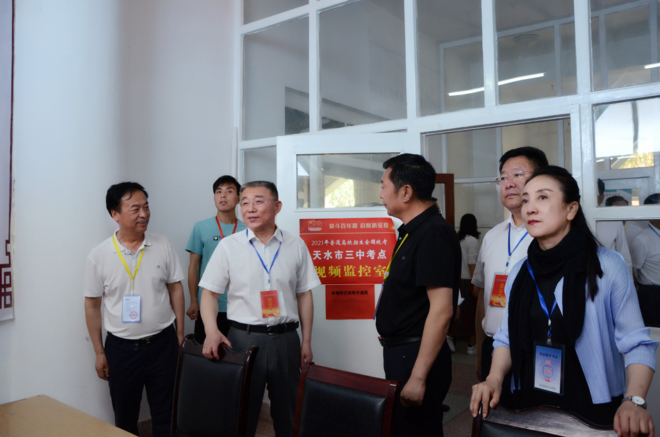 王锐、王国先一行先后来到天水市教育考试指挥中心、市一中、市三中、田家炳中学、天润学校、市二中等考点,认真听取今年高考备考工作情况汇报,并实地查看各考点疫情防控、考场布置、安全通道和电子监控设置、周边环境秩序维护等情况。王锐、王国先指出,一年一度的高考是牵动千家万户、备受全社会高度关注的大事。各级各有关部门要切实增强责任意识、纪律意识和服务意识,既各司其职、各负其责,又通力协作、紧密配合,严把安全关口、严密操作流程、严肃考风考纪,高标准、高质量做好考场内外各项工作,确保零差错、零失误、零事故。要严格落实高考期间的各项疫情防控要求,一丝不苟、稳妥周密做好防控工作,确保万无一失。要把各项工作想在前、干在前,紧盯重点区域和环节,细化完善应急预案,高效有序做好交通保障、食品安全、噪音治理、医疗保障、心理疏导、应对恶劣天气条件等工作,及时迅速处理突发情况,真正让考生安心、家长放心、社会满意。