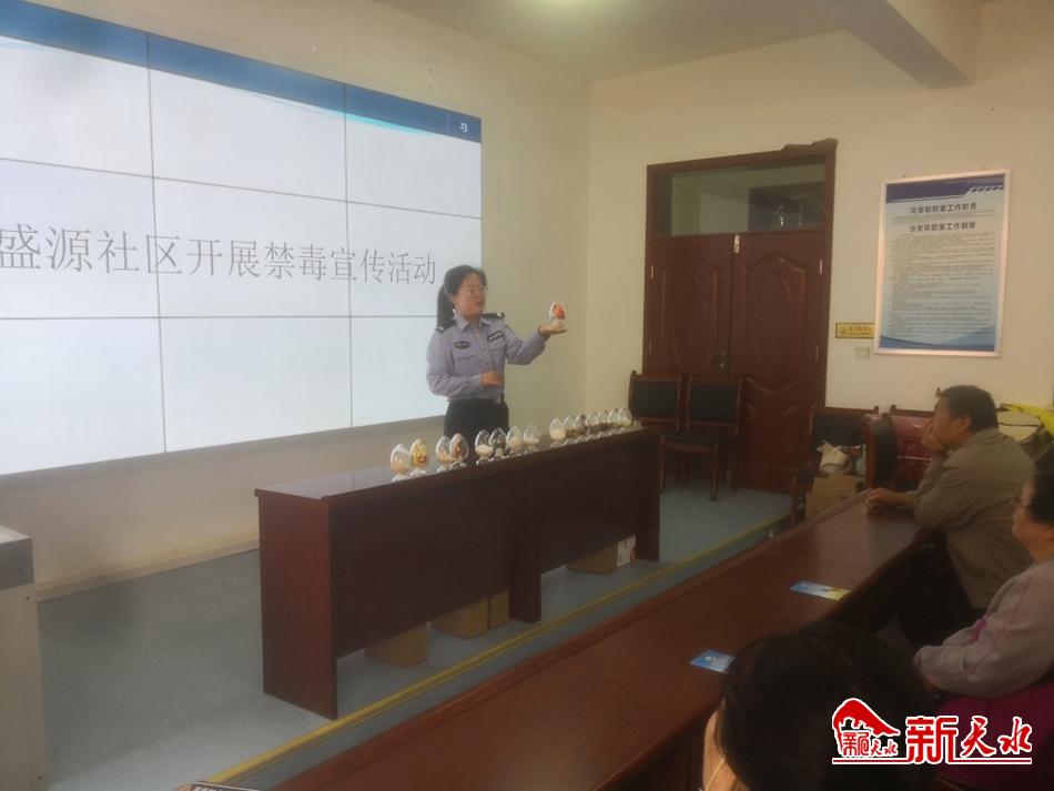 新天水讯【记者 余碧波】为进一步做好禁毒宣传工作,增强辖区居民对禁毒法律法规的了解和认识,6月4日,秦州公安分局北关派出所民警走进秦州区盛源社区,开展禁毒知识讲座及宣传活动。