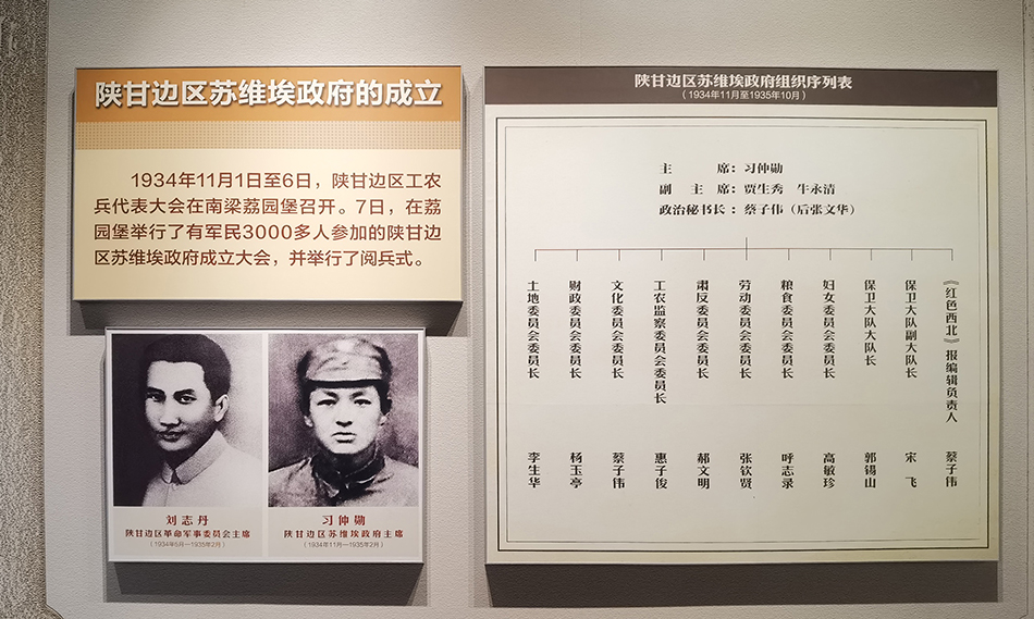1934年11月1日至6日,陕甘边区第三次工农兵代表大会在南梁荔园堡召开。会议经过充分酝酿讨论,决定成立陕甘边区苏维埃政府,并选举产生了苏维埃政府的领导成员,刘志丹任军委主席,习仲勋当选政府主席。