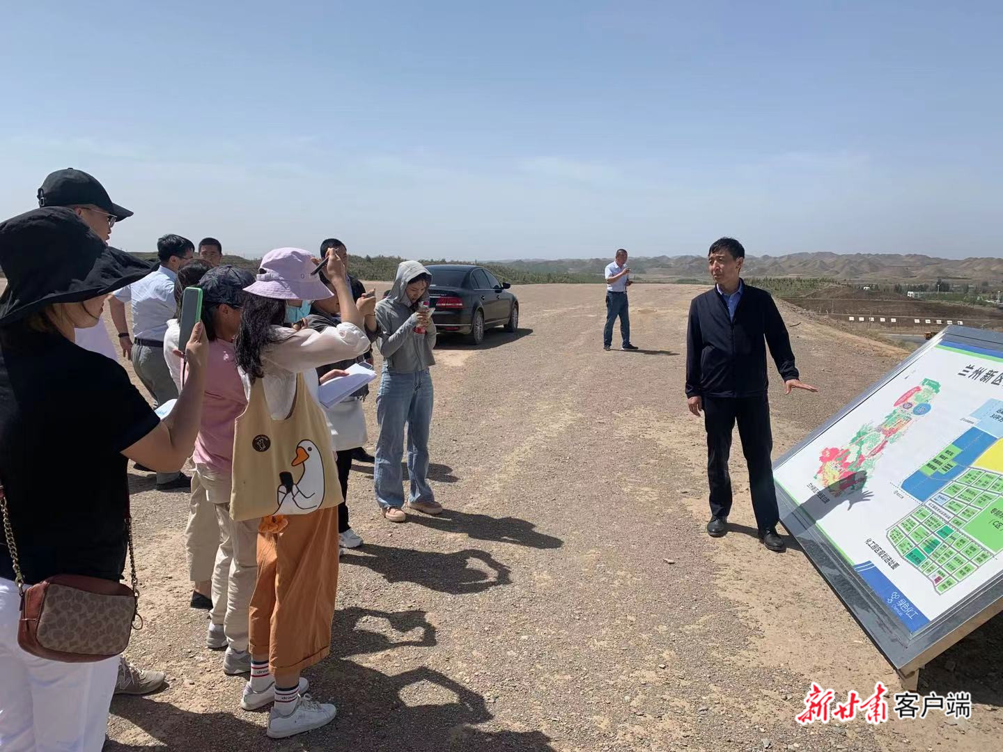 6月7日,阳光明媚,晴空万里,“风华百年路 奋进新陇原”行进式采访活动采访团一行驱车来到位于兰州新区西北部的新区绿色化工园区。