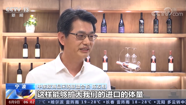 中东欧商品采购联盟会长 陈友相:就是通过这个联盟,把各家都能够集中在一起集中采购,比方说我们现在的乳制品,我们现在的话就是说一下子能够几百个柜1000个柜,这样能够扩大我们的进口的体量。