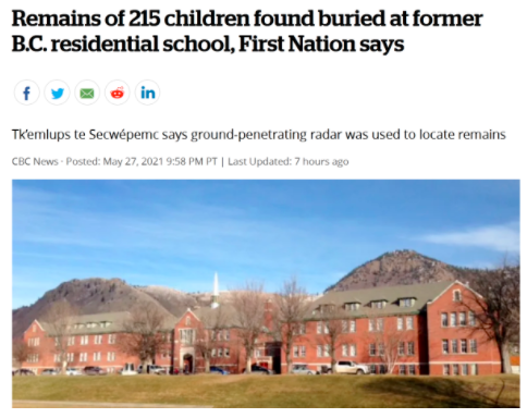 5月底,加拿大不列颠哥伦比亚省坎卢普斯市一所原住民寄宿学校旧址惊现215具原住民儿童遗骸,其中最小的孩子年仅3岁。这一发现震惊了国际社会。