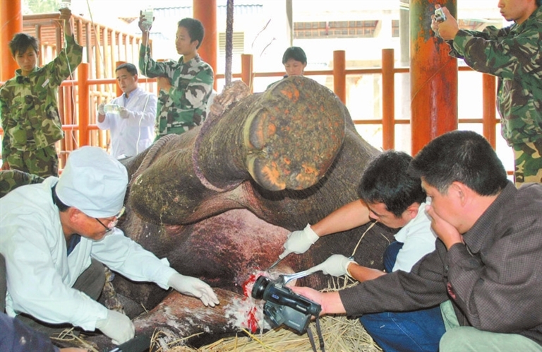 西双版纳国家级自然保护内的野象谷,因野象活动频繁而得名。1996年正式建成开放至今,除了作为景区接待游客外,还建成了西双版纳最大的野生动物收容救护中心,承担起了救助受伤和受困野象及其它野生动物的社会责任,至今已收容救助1200余头(只)野生动物。2007年“十一”黄金周期间,一场营救野象的行动在中老边境有序拉开。一头在中老边境地区活动的母象遭到公象攻击受伤,命垂一线,在勐腊县勐满镇南坪村附近被村民发现后,一支由公安民警、亚洲象专家和医护人员等组成的51人队伍,对其展开救助。