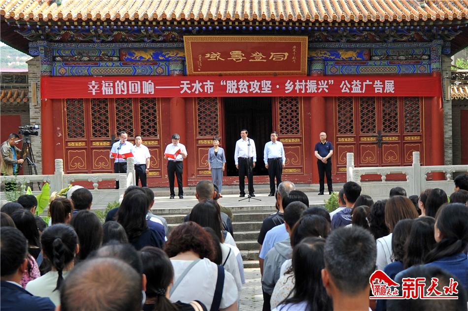 6月7日,天水市“脱贫攻坚·乡村振兴”公益广告展在天水市美术馆开展。正如展览主题:幸福的回响,展出的2019年以来天水日报社全媒体刊发的公益广告、特刊、专版中,有通过产业致富的农民丰收的喜悦、有住进新居群众的笑脸、有奋战在脱贫攻坚一线的驻村干部的身影,回望他们经年累月为脱贫攻坚奋战的日日夜夜,战果丰硕。展望乡村振兴的蓝图,为了天水更美好的明天,他们撸起袖子加油干。