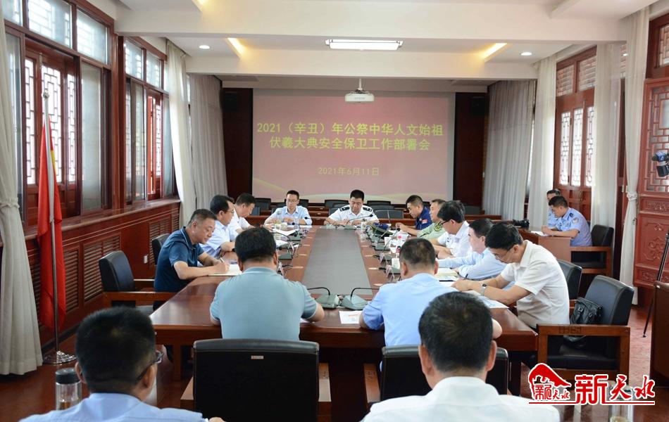 新天水讯【记者 童强】6月11日,2021(辛丑)年公祭中华人文始祖伏羲大典安全保卫工作部署会议在伏羲庙管理局召开。副市长、市公安局局长郭庆祥参加会议并讲话。