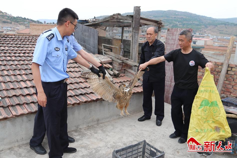 新天水讯【记者 张彬霞】端午节当天,秦安县一居民家中来了一位特别的“客人”,一只猫头鹰。后警民携手将其重新放归大自然。