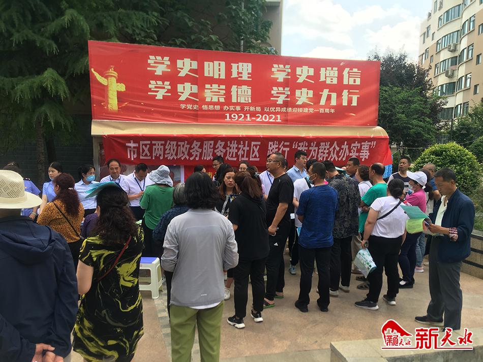 新天水讯【通讯员 张慧媛】6月12日,为进一步推进党史学习教育深入开展,秦州区七里墩街道联系市区两级政务服务中心的工作人员走进社区、走近居民,为大家宣传政策。