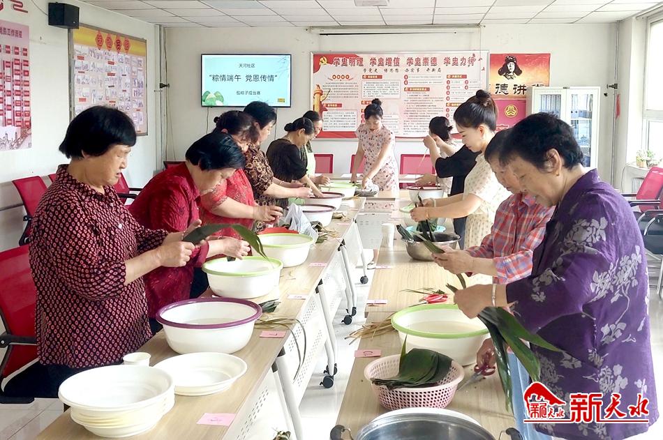 新天水讯【通讯员 窦耀辉】淡淡粽叶香,浓浓爱党情。6月11日,麦积区桥南街道办事处天河社区举行“粽情端午 党恩传情”包粽子擂台赛,旨在弘扬中华民族博大精深的传统文化,把党史学习教育“我为群众办实事”主题实践活动走深走实走新,通过向辖区居民赠送小小糯米粽子,传递党的恩情,促进邻里和睦,进一步增强了基层党组织的凝聚力和向心力。
