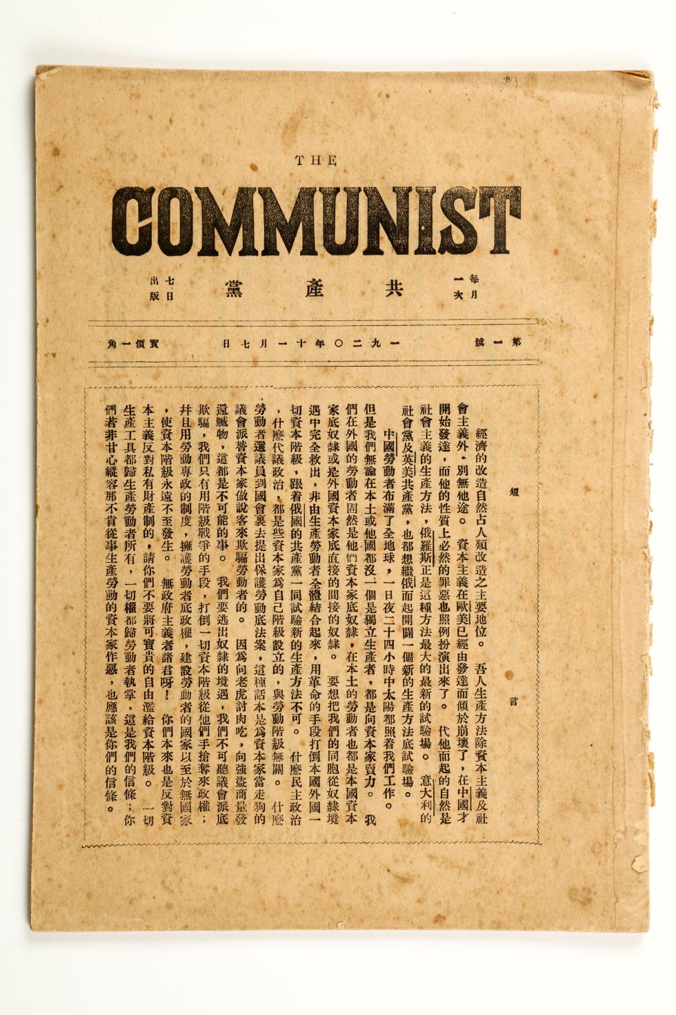 这是《共产党》月刊创刊号。新华社发(中共一大纪念馆提供)