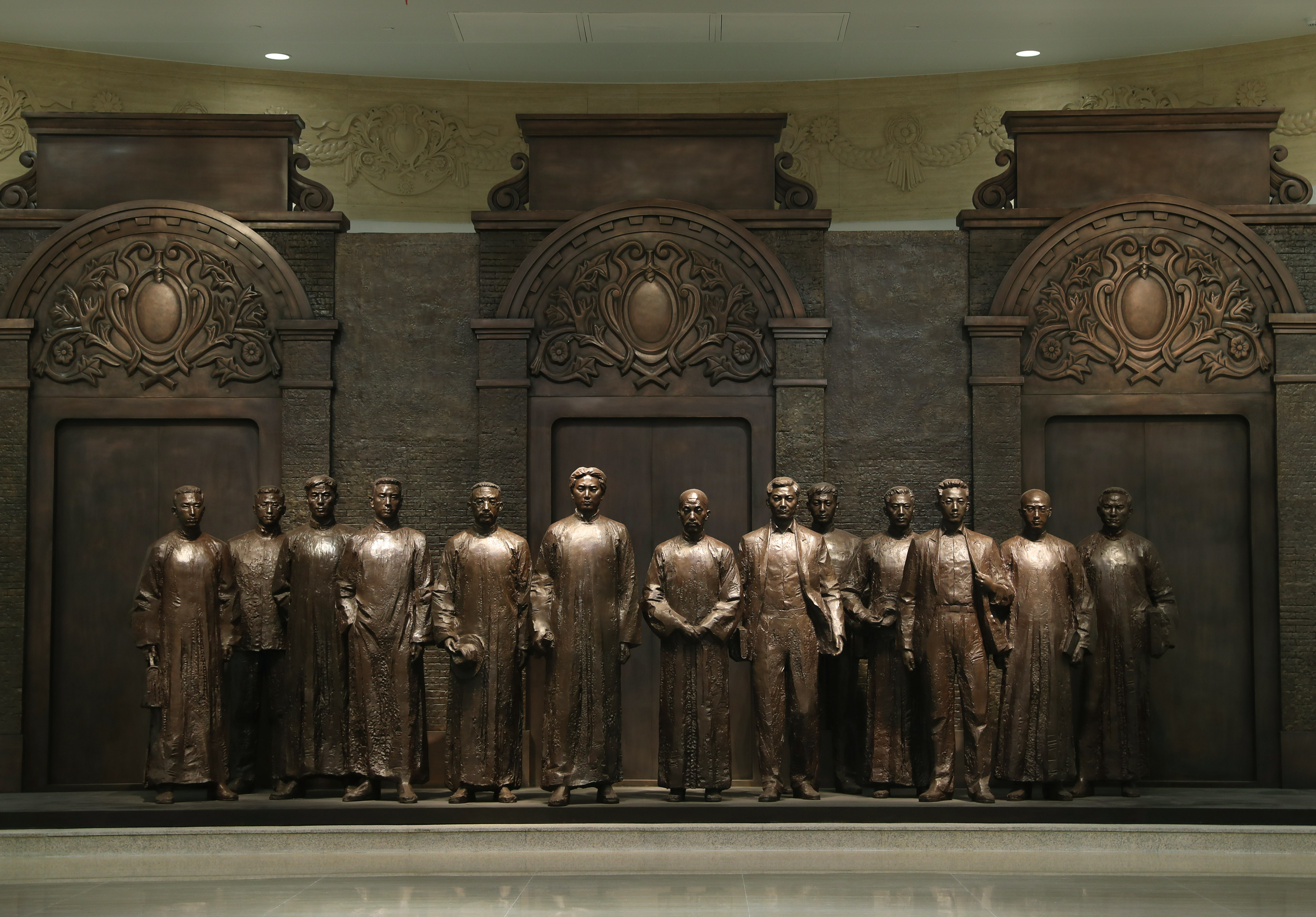 6月1日拍摄的中共一大纪念馆内的一大代表群体铜像。新华社记者 刘颖 摄