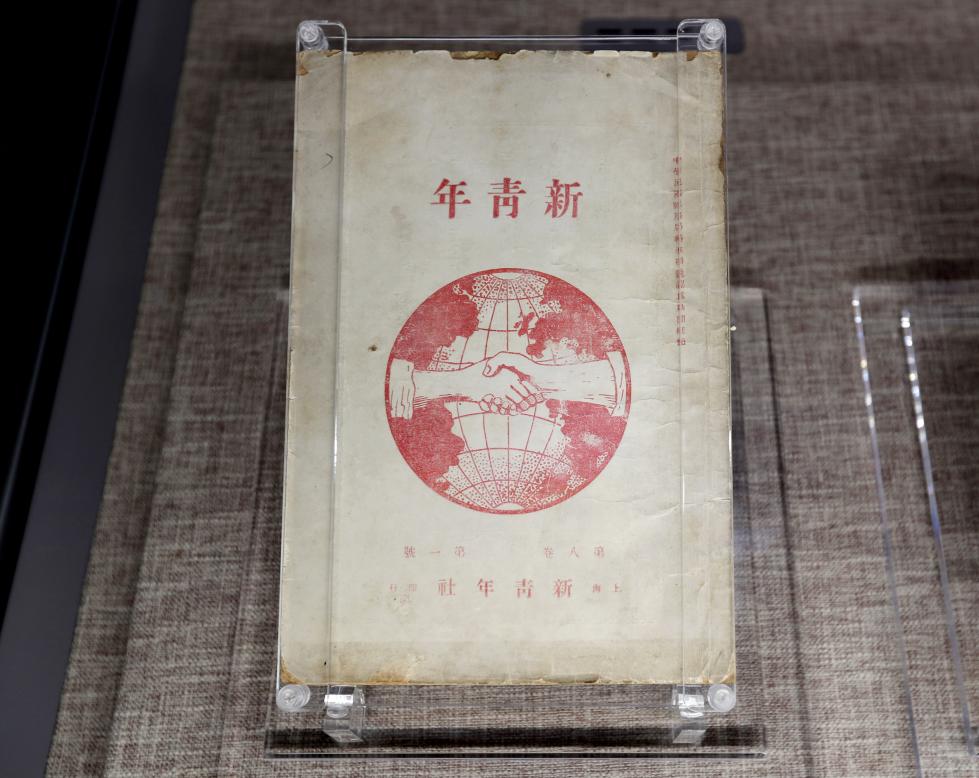 中共一大纪念馆展示的《新青年》8卷1号(6月1日摄)。新华社记者 刘颖 摄