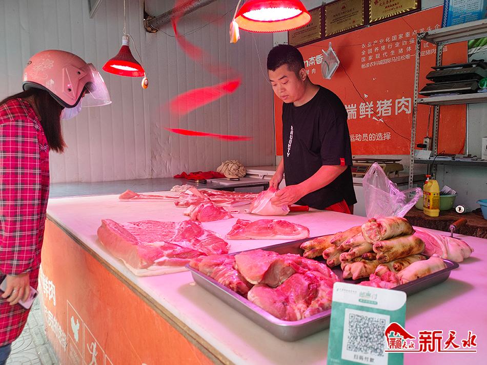 就在记者与摊主谈话间,家住玉泉观附近的王女士来到该销售点购买了价值23.5元的鲜肉。“这在以前就得花40多元,现在确实降了不少,省下来的钱都够买菜了。”王女士说:“以前肉贵的时候好几天才做一次荤菜,还舍不得多放,现在基本上每天都有肉,家里的伙食明显变好了。“