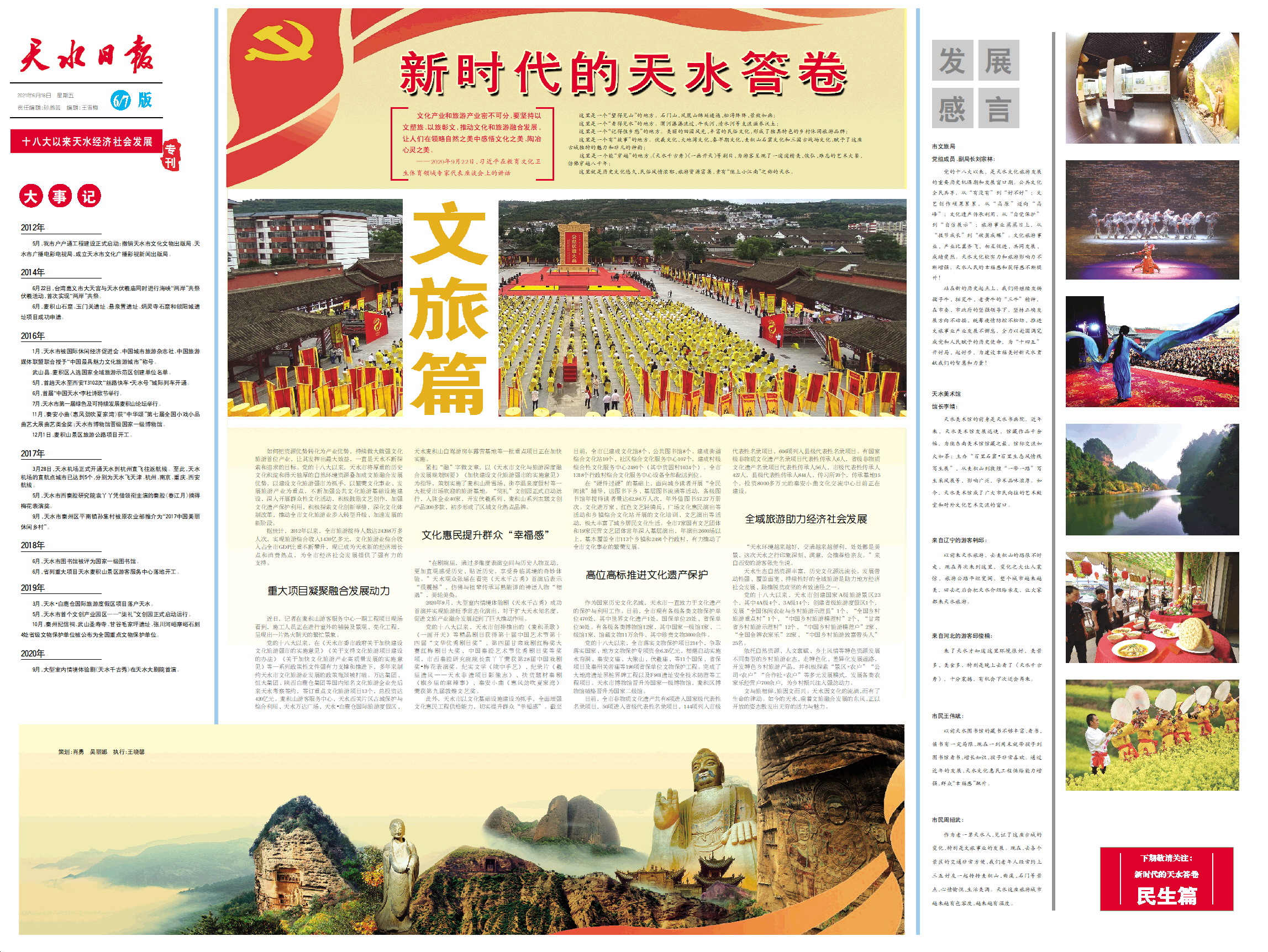 7月19日,天水市文化旅游产业发展大会召开,文化旅游产业被确立为天水市首位产业。