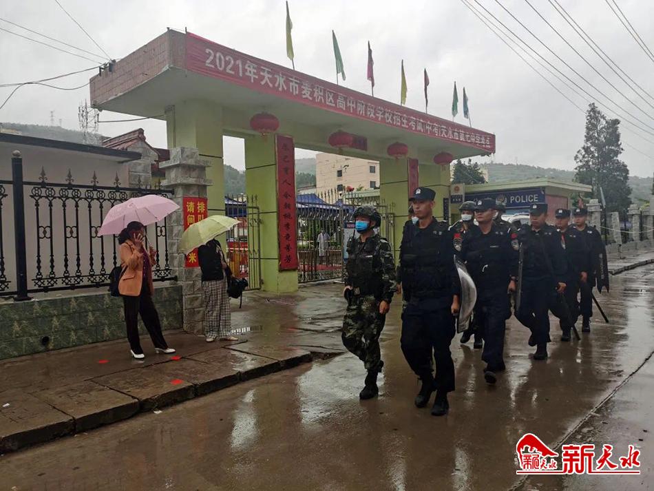 新天水讯【记者王晓华】6月16日至18日,正值2021年中考,考场内莘莘学子为着梦想而努力拼搏,考场外,麦积公安严阵以待,为他们保驾护航。