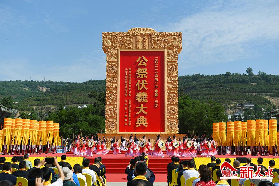新天水讯【记者王晓馨】陇山苍苍,渭水汤汤。龙马负图,共祭羲皇。6月22日,由国务院港澳事务办公室、国务院台湾事务办公室、中华全国归国华侨联合会和甘肃省人民政府主办,天水市人民政府承办的2021(辛丑)年公祭中华人文始祖伏羲大典在天水市伏羲广场隆重举行。