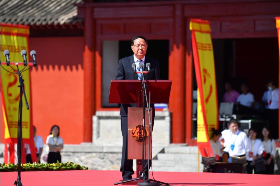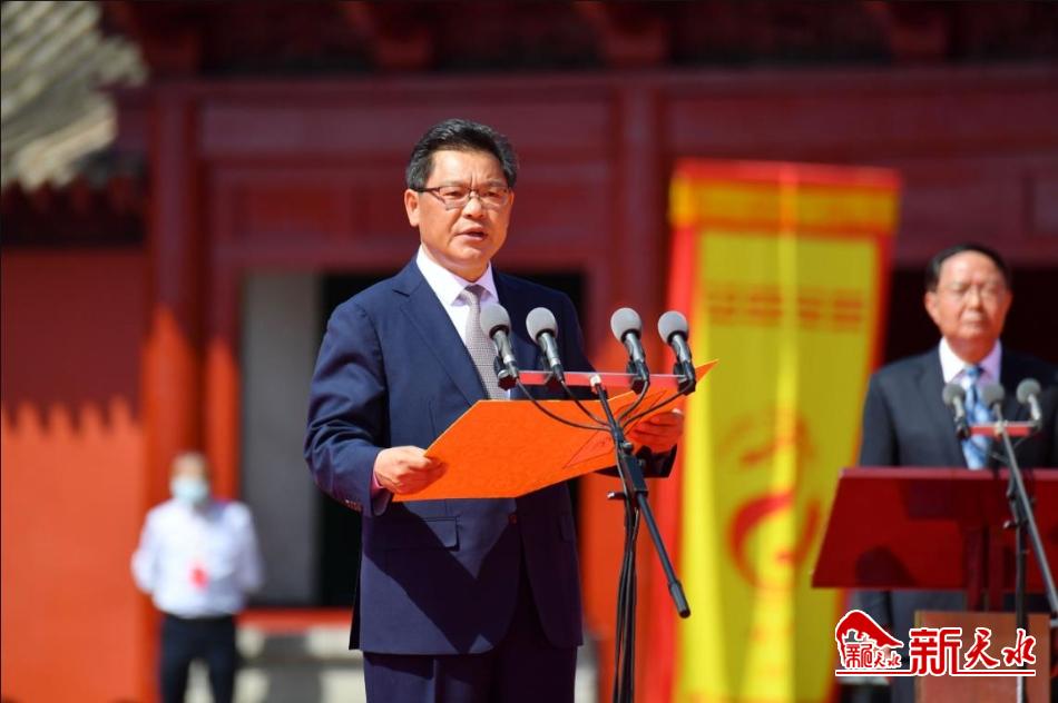 击鼓鸣钟之后,任振鹤心怀虔诚崇敬之情,面朝伏羲圣像恭读祭文,颂扬伏羲功德,表达羲皇儿女继往开来之志,祈愿伟大祖国平安昌盛。