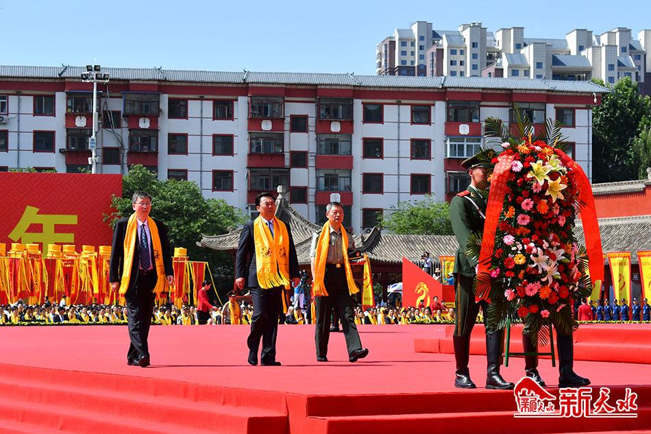 乐舞告祭结束后,任振鹤、欧阳坚等及参祭嘉宾、群众依次进入伏羲庙,向伏羲圣像敬献花篮,拜谒伏羲圣像,感怀伏羲圣德。