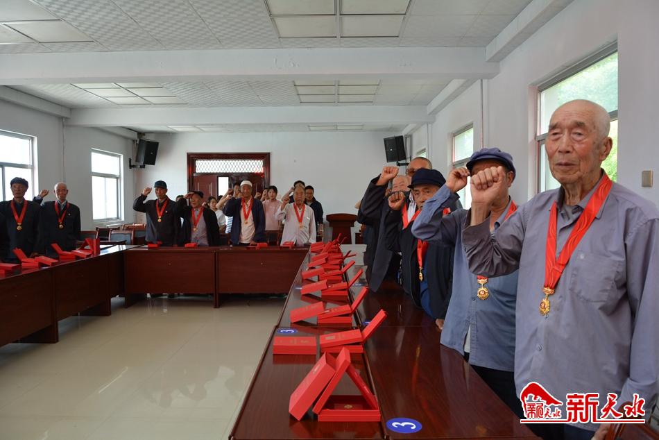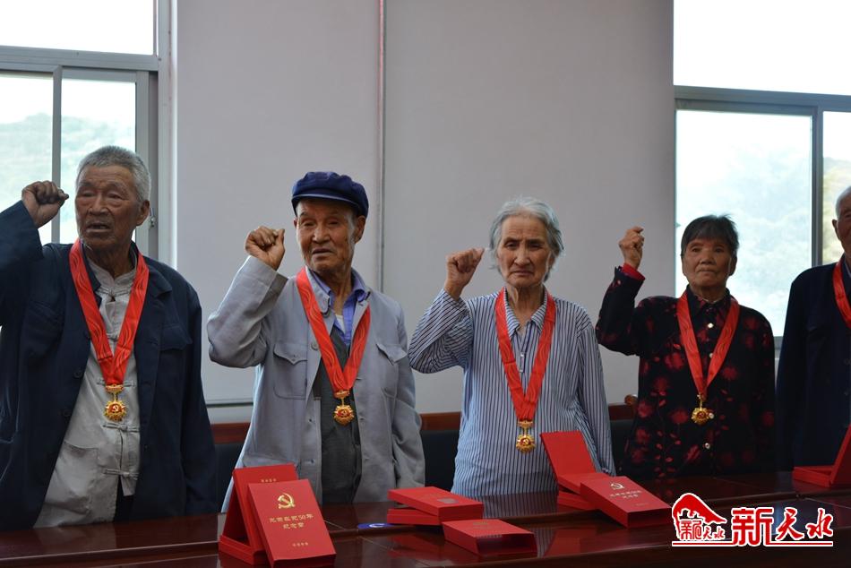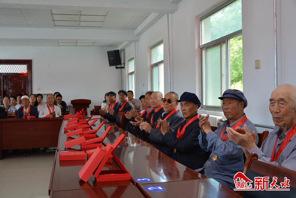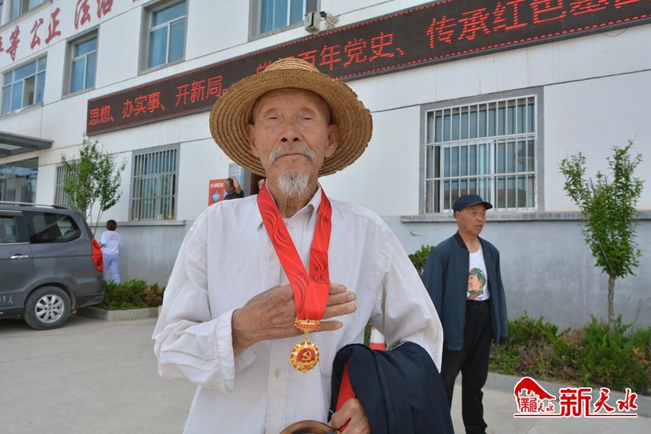 6月22日下午,秦州区平南镇举行了“光荣在党50年”纪念章颁发仪式。平南镇党委主要领导为前来参会的老党员现场颁发并佩戴了纪念章,与大家一起重温了入党誓词,还开展了“历史课教师讲党史”活动。 (新天水记者 何慧娟 摄)