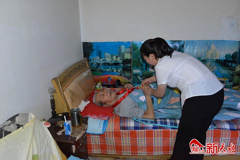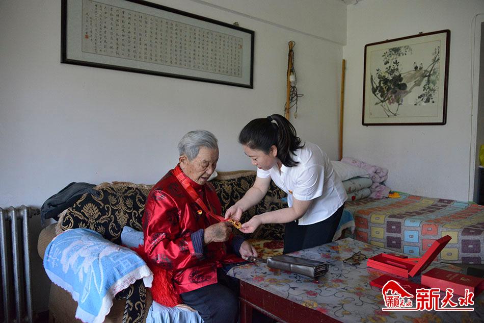 曾参加过抗美援朝战争,党龄61年的王鉴珍老人虽然卧病在床行动不便,但当社区干部帮他佩戴上纪念章后,摸着胸前的纪念章,老人的手久久舍不得放开。