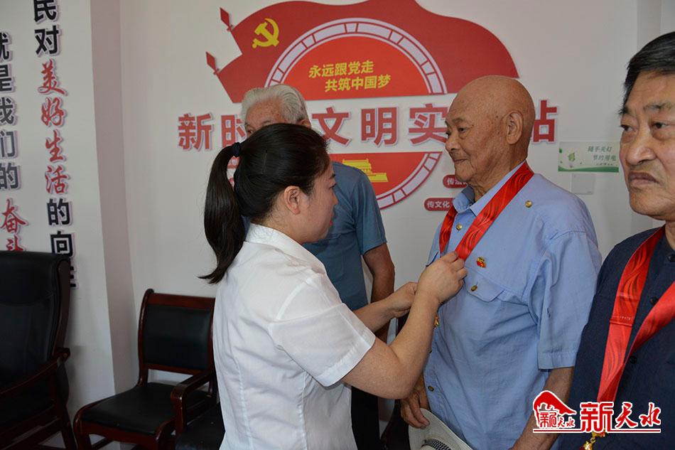 新天水讯【记者 黄虹】“没想到我还能得到这么高的荣誉,没想到党和政府一直记着我。这枚纪念章,是党对我们老同志的关心和关爱,是荣誉更是责任。我要再接再厉,继续为党奉献我的一生。”6月22日,已经91岁高龄,党龄66年的党员袁文洲老人双手捧着“光荣在党50年”纪念章激动地说。