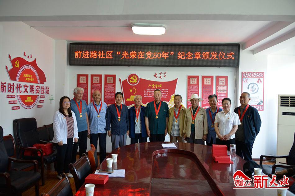 当天,前进路社区党委还向39位党龄达到50周年以上的老党员和亲属代表颁发了“光荣在党50年”纪念章。
