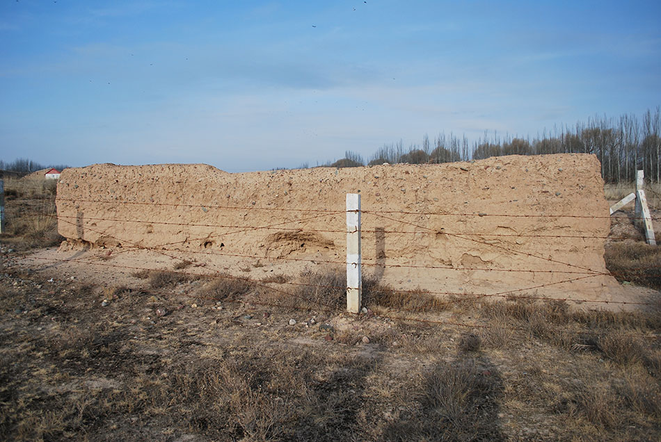这又是一段极不普通又极不寻常的黄土夯筑墙。这是当年红西路军前进剧团遭遇战的战斗遗址。