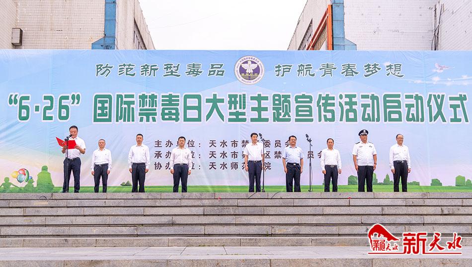 新天水讯【记者安蓉】6月26日是第34个国际禁毒日,天水市“6·26”国际禁毒日宣传活动启动仪式在龙城广场举行。市委常委、政法委书记刘天波宣布活动启动。副市长、市禁毒委主任、市公安局局长郭庆祥参加启动仪式。