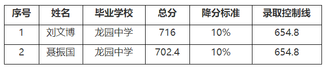 军人子女照顾录取2人,见下表: